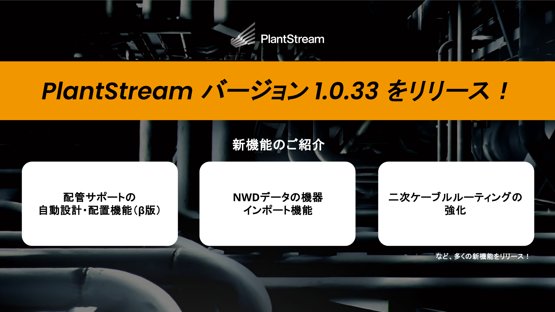 このたび、設計効率と精度を大幅に向上させる新機能を搭載した「PlantStream Version 33」をリリースしました。